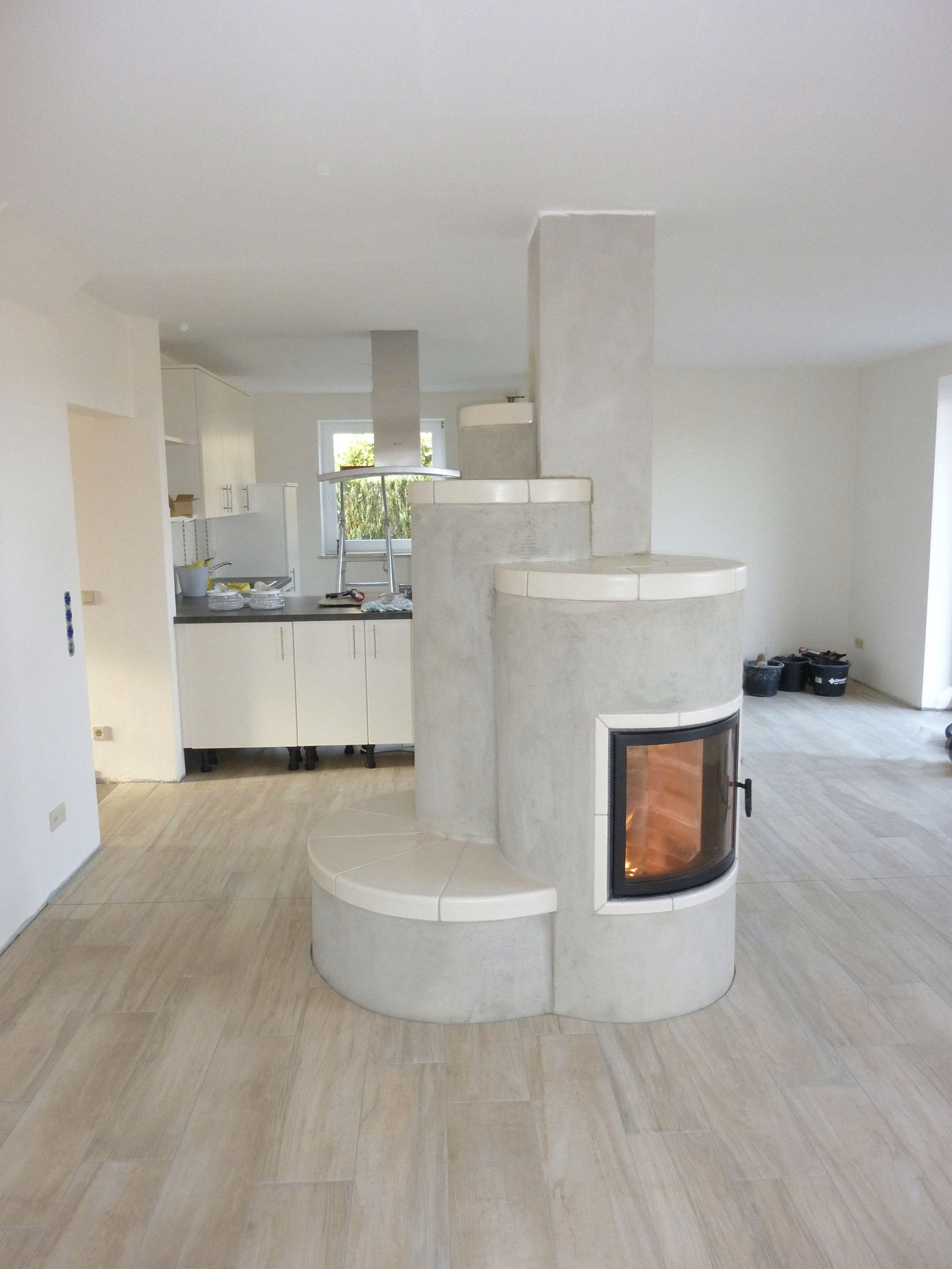 Der handwerklich gesetzte Grundofen zeichnet sich durch seine bis zu 20 stündige Speicherdauer mit einem Abbrand aus.